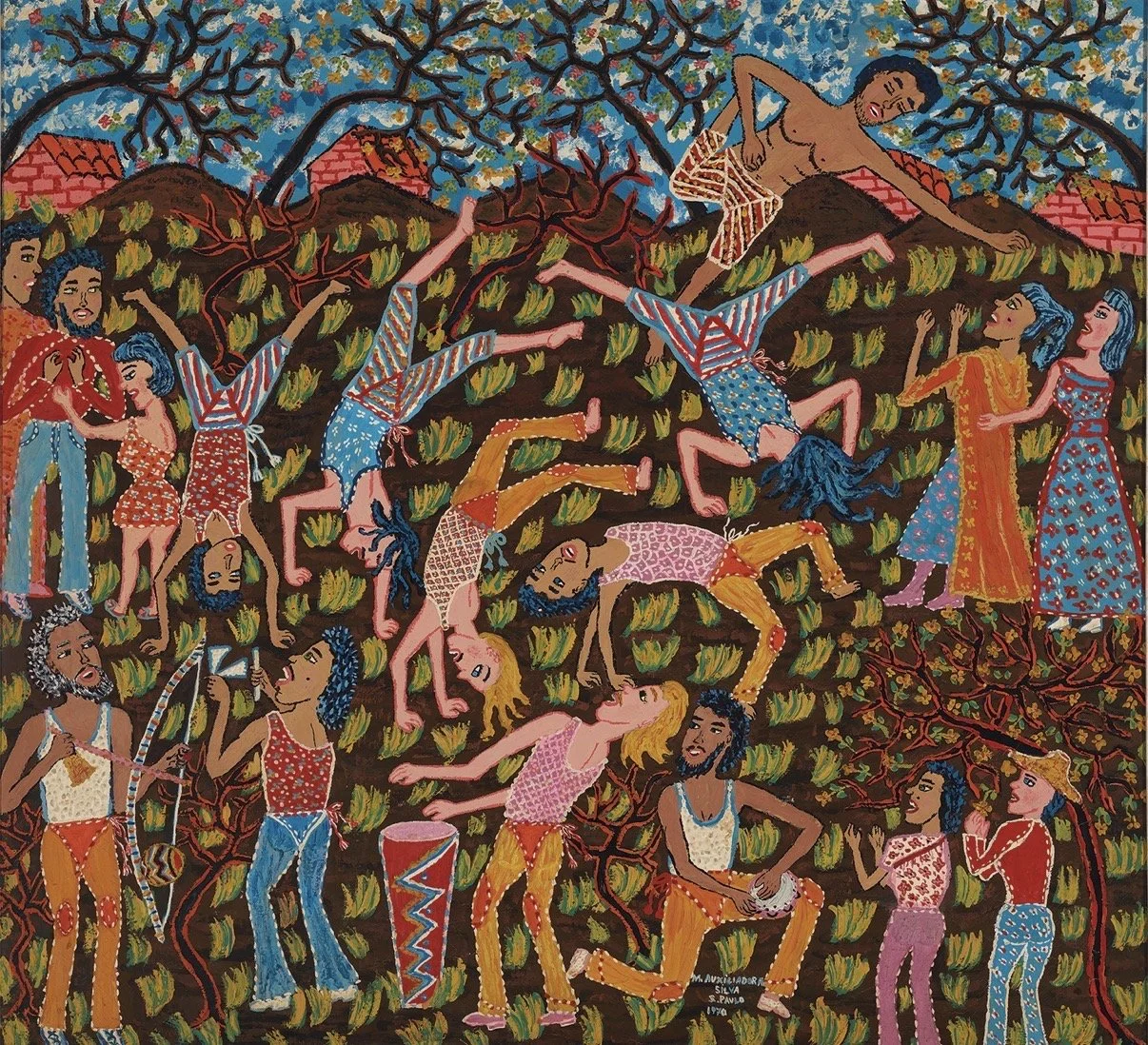 Maria Auxiliadora da Silva (1935–1974) was a self-taught artist born in Minas Gerais and later active in São Paulo. Her paintings portray the daily life, culture, and spiritual traditions of Black Brazilian communities with vivid color and striking texture. Working outside traditional academic institutions, she developed a distinctive visual language that combined painting with sculptural surfaces, building thick layers of pigment that give her scenes a tactile, almost three-dimensional presence.